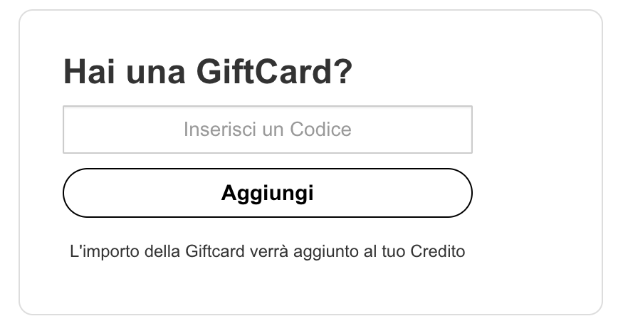 Nell'area Account, cerca il seguente widget ed inserisci il codice della tua Gift Card.